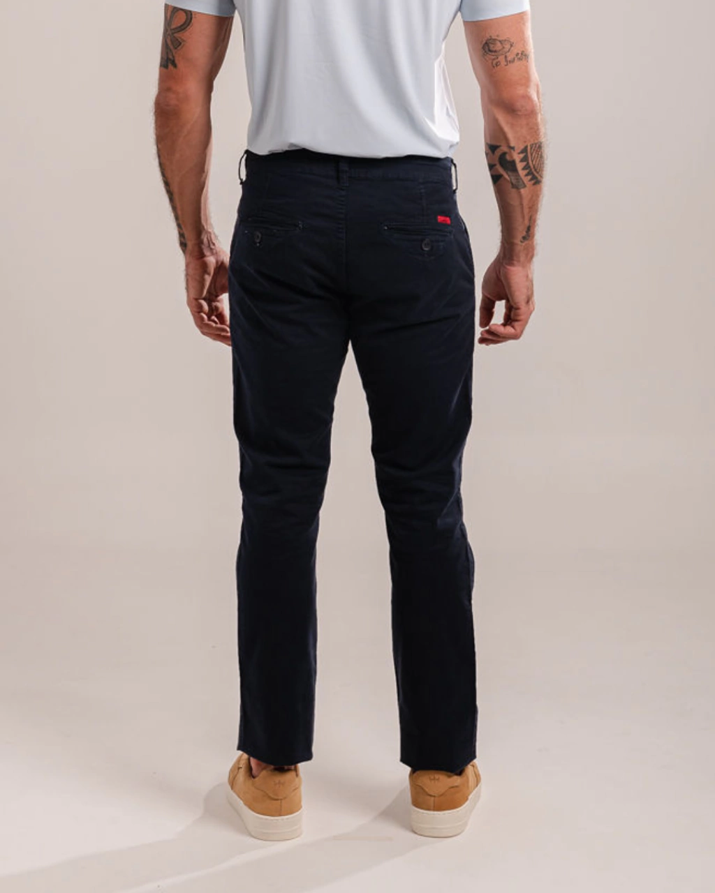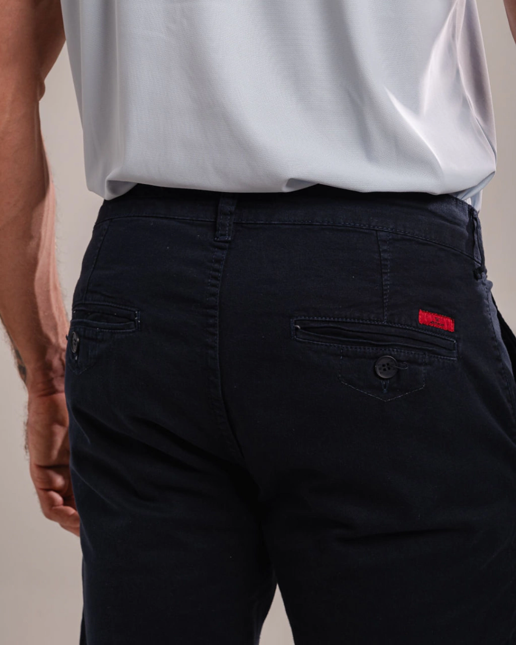 Calça de sarja TRT slim com elastano na cor azul marinho.