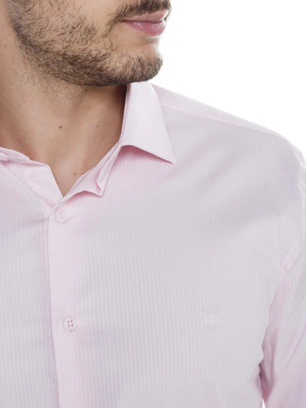 Camisa TRT manga longa slim maquinetada fio 60 com elastano na cor rosa, punho quadrado e gola inglesa.