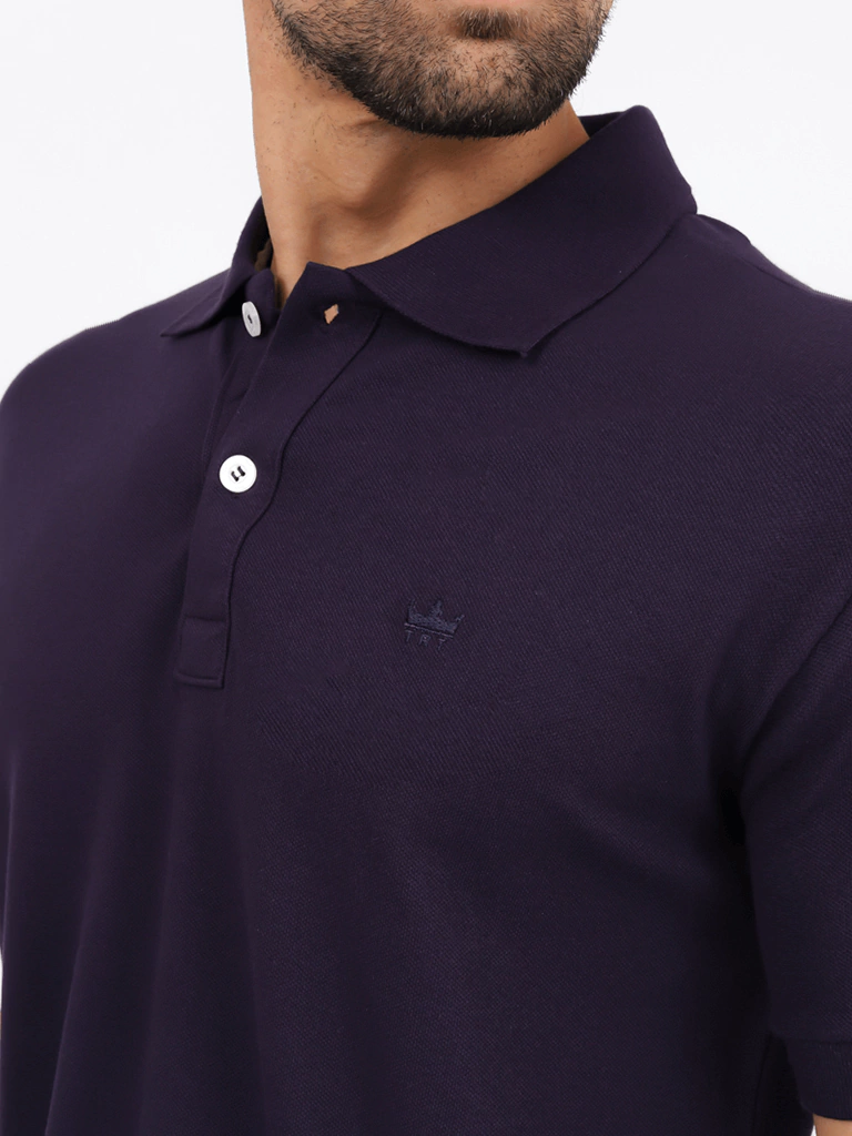Polo piquet TRT lisa com elastano na cor roxa, proporcionando um ajuste perfeito ao corpo.